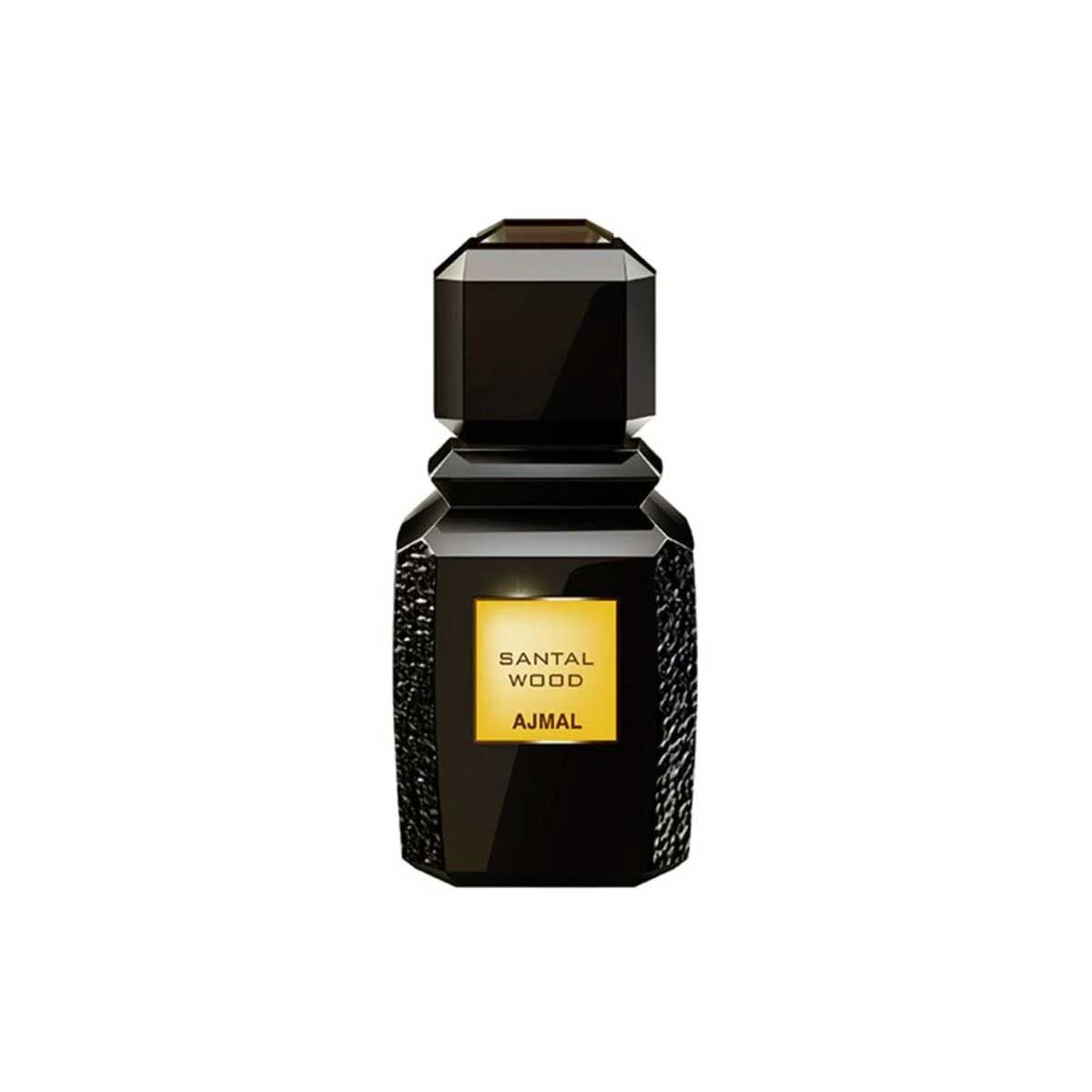 Launch year: 2014. Top notes: Marigold, Cardamom, Caraway seed. Heart notes: Jasmine, Rose, Ginger, Cedarwood. Base notes: Sandalwood, Patchouli, Oud. Design house: Ajmal. Scent name: Santal Wood. Gender: Unisex. Category: Perfume. SubType: EDP Spray. Size: 3.4 oz. Barcode: 6293708006755. Santal Wood by Ajmal for Unisex - 3.4 oz EDP Spray.