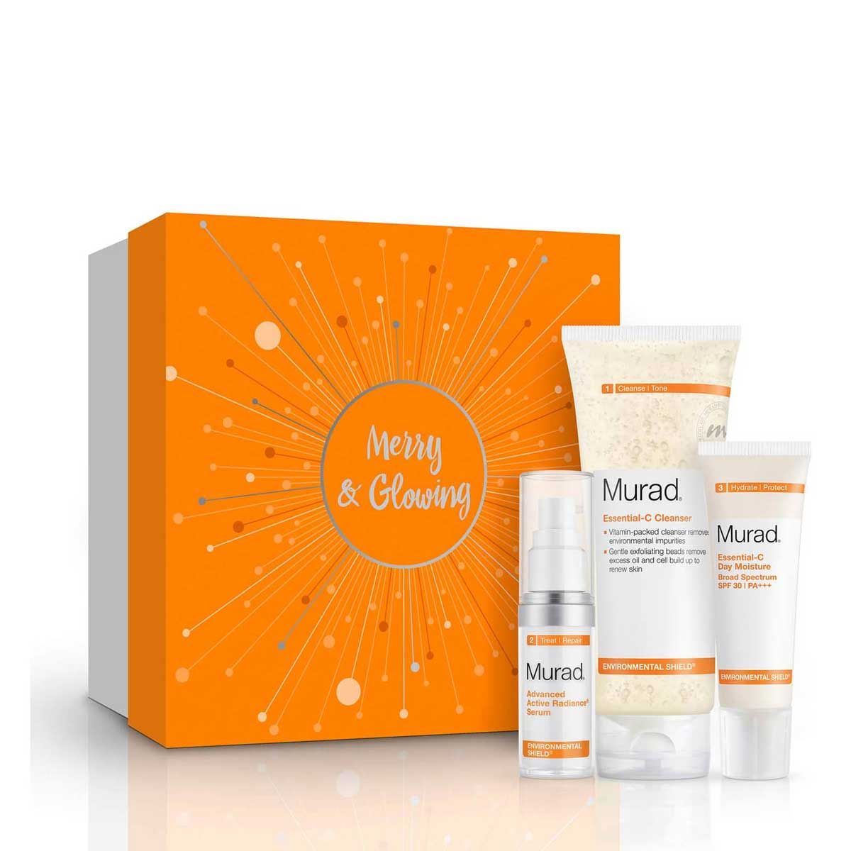 A collection from the renowned Environmental Shield® line, the Merry & Glowing Kit is a maximum-strength Vitamin C regimen designed to brighten skin’s tone and refine its texture. This kit contains Advanced Active Radiance Serum, Essential-C Day Moisture BS SPF 30|PA+++, and Essential-C Cleanser.